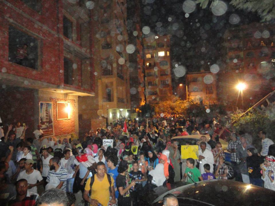 و انتهت المسيرة بالعودة لميدان العرب في حدود الحادية عشر والنصف بعدما هتف المتظاهرون هتافات منددة بالحكم العسكري و بمجازر فض اعتصامىرابعة و النهضة و الاجراءات القمعية التى تمارسها السلطات
