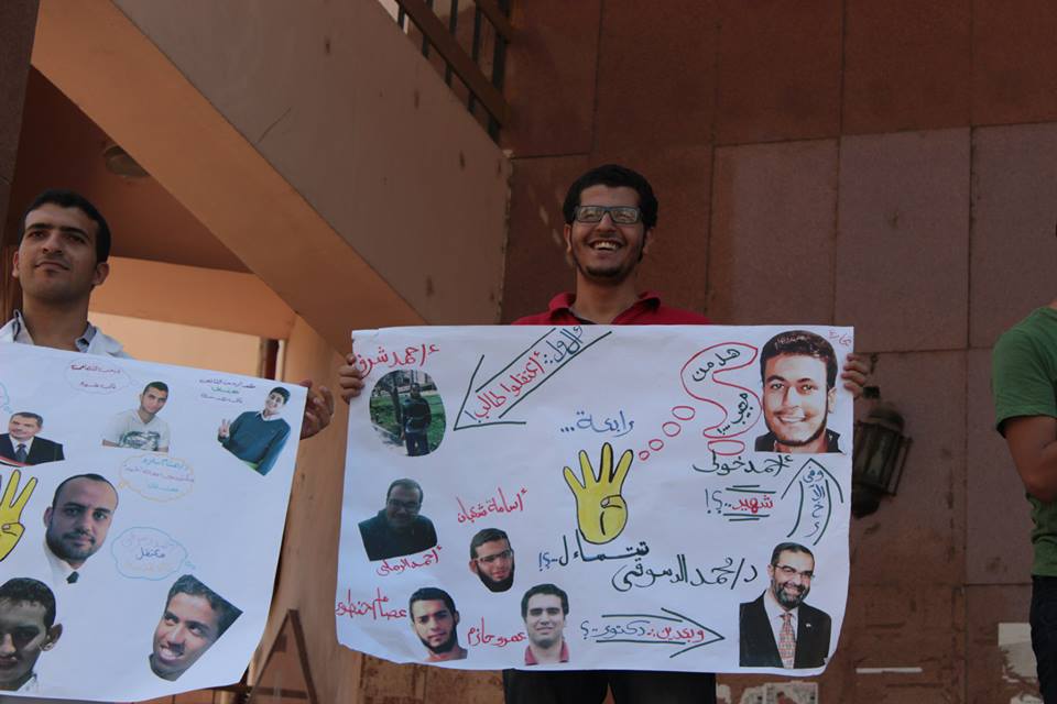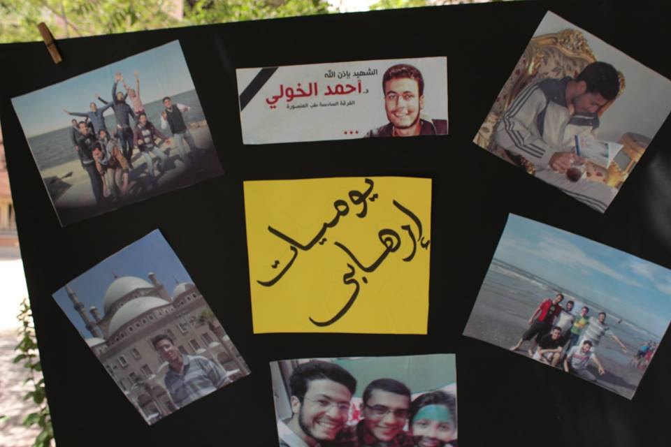 قام طلاب كلية طب بجامعة المنصورة معرضاً تحت عنوان " طب ضد الإنقلاب " وذلك بساحه كلية الطب بالجامعة.