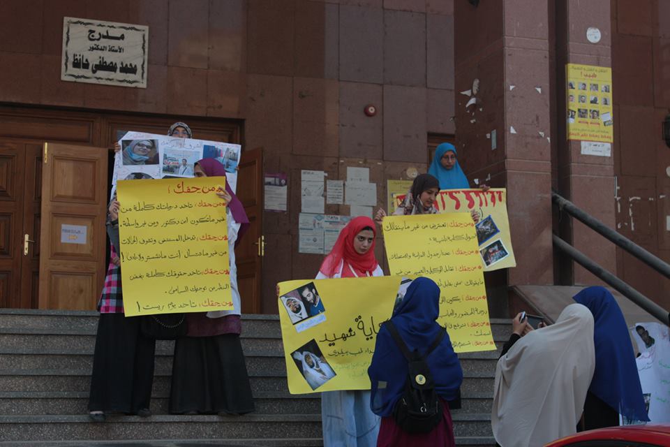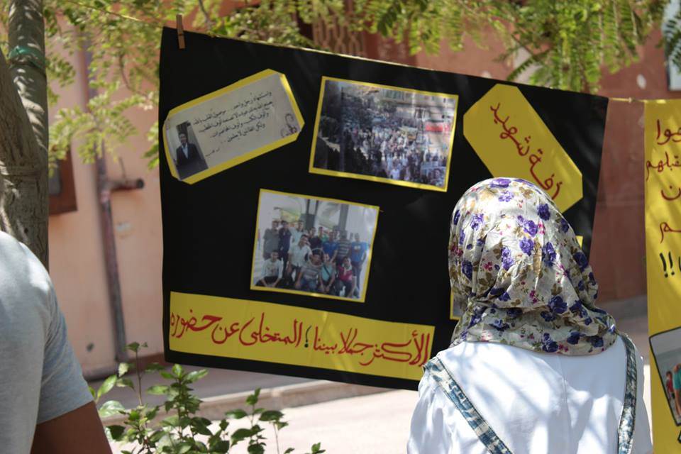 كما ندد المعرض بإعطاء عميد الكلية أوامر بمسح الجرافيتي الخاص بشهداء الكلية وتمزيق البوسترات الخاصة بهم.