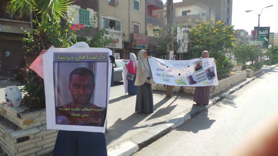 وندد المشاركون باعتقال طالبين يدرسان في كلية الهندسة بجامعة بني سويف هما علاء حسن "الفرقة الثالثة" والطالب ياسر عبدالتواب "الفرقة الأولى" .