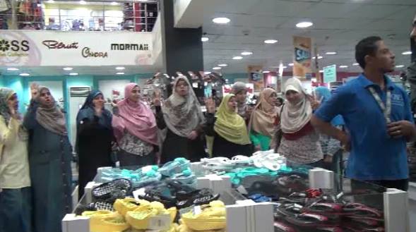 ورفع السيدات إشارة رابعة العدوية وقاموا بتشغيل أناشيد "ثورة دي ولا انقلاب" على هواتفهم المحمولة، بينما شكلت الوقفة مفاجأة للعملاء المول.