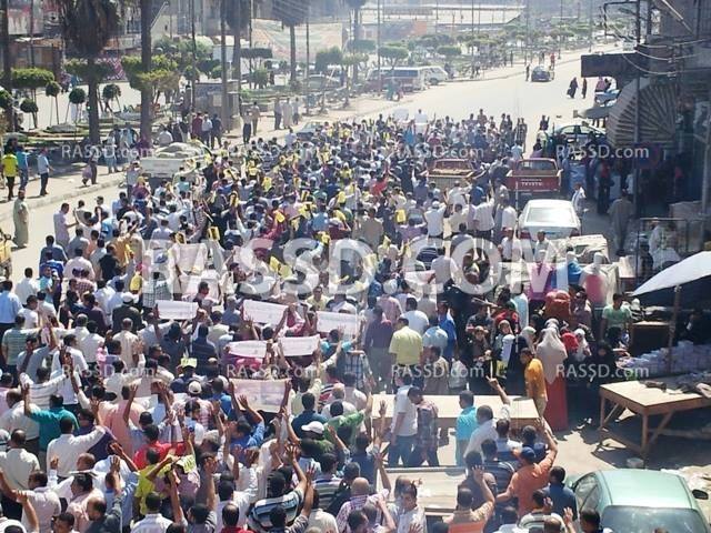 و كانت خرجت مسيرة حاشدة في المحلة الكبرى بمحافظة الغربية جابت شارع البحر وتتجه إلى ميدان الشون .