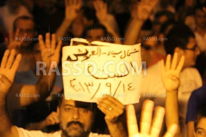 و جابت المسيرة شوارع العريش في يوم الوفاء لدماء الشهداء و ذكري مرور شهر علي مذبحتي رابعة العدوية، والنهضة، مطالبة بالقصاص لدماء الشهداء، ووقف حملة الاعتقالات العشوائية بشمال سيناء.