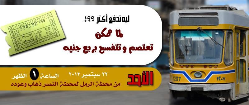 دشن عدد من نشطاء على موقع التواصل الاجتماعي" فيس بوك" اليوم الأثنين دعوة لاعتصام بالترام تحت شعار "ليه تدفع اكتر لما تقدر تتفسح وتعتصم بربع جنيه" بمحافظة الاسكندرية أسوة باعتصام المترو في القاهرة .