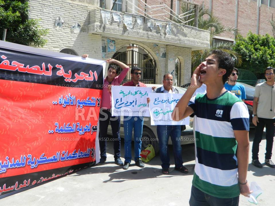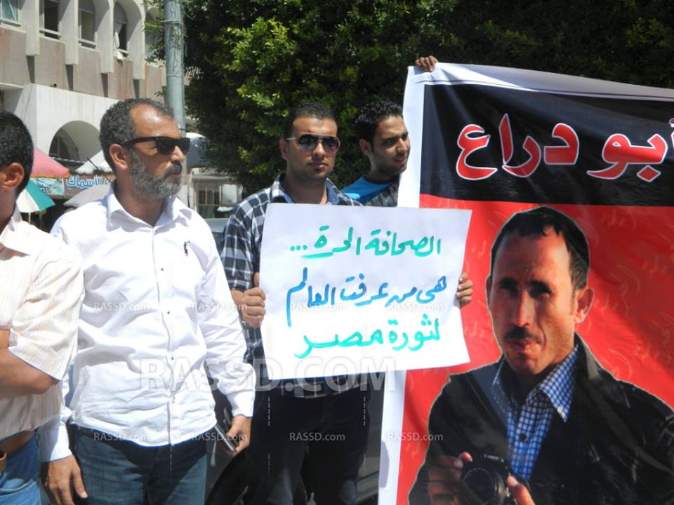 نظم صحفى ومراسلى محافظة شمال سيناء وقفة احتجاجية ، أمام المجلس المحلى لمدينة العريش تنديدا بمحاكمة الصحفى أحمد أبو دراع أمام المحكمة العسكرية بالإسماعيلية للمطالبة بإطلاق سراحه.