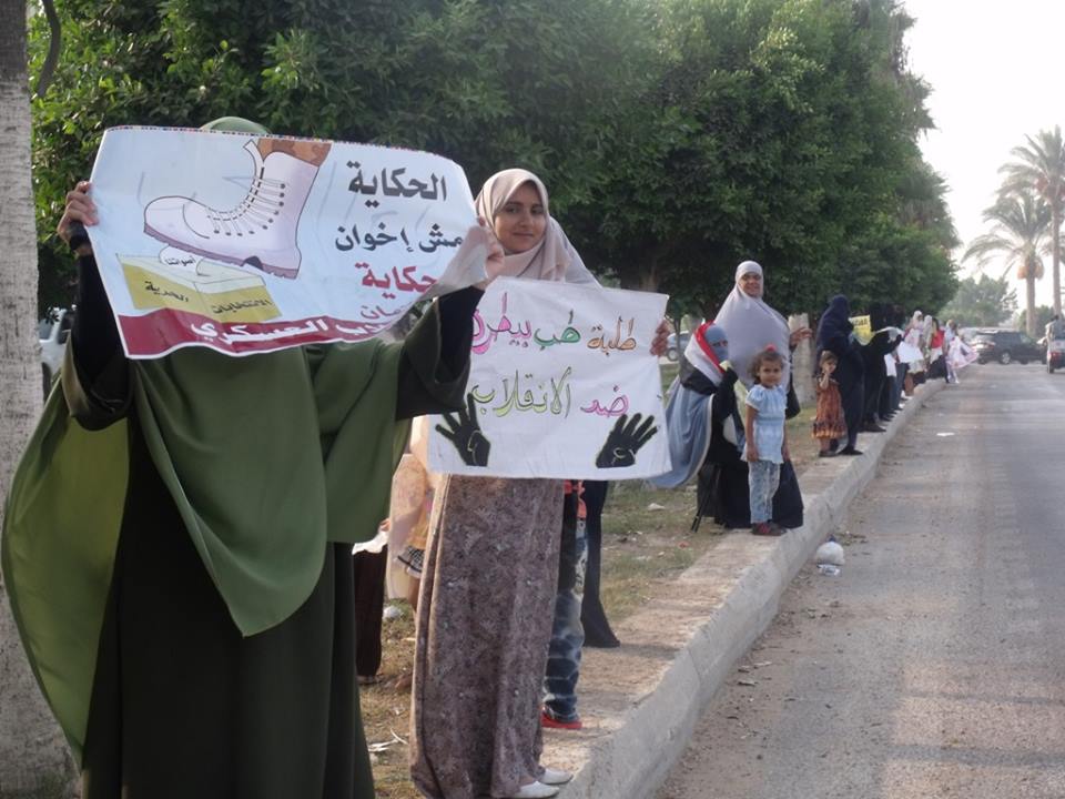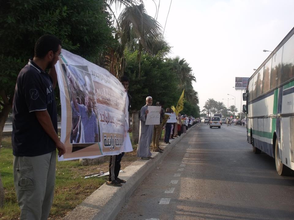 نظم المئات من أهالي برج العرب أمام بنك التنمية الصناعي بمحافظة الإسكندرية اليوم الخميس سلسله بشريه رفضا للانقلاب دعا لها التحالف الوطني لدعم الشرعية .