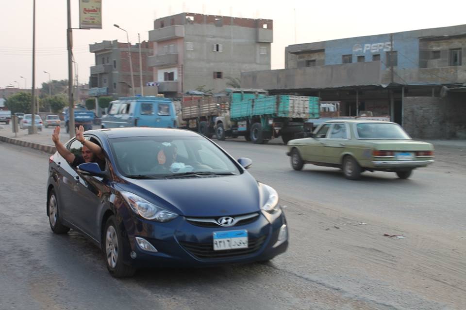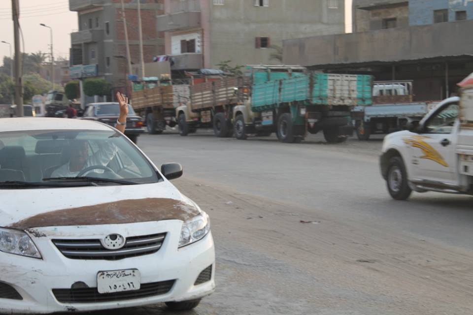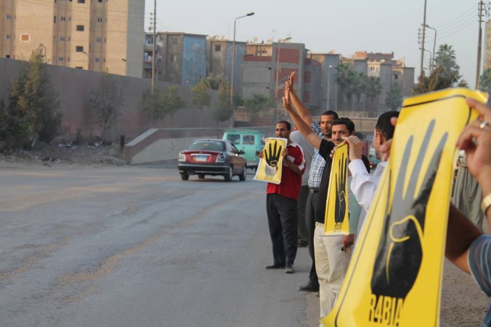 و رفع المشاركون إشارة  "رابعة " كما رفعوا صور للرئيس محمد مرسي وبعض اللافتات المنددة بالانقلاب وسط تجاوب من العديد من المارة و السيارات