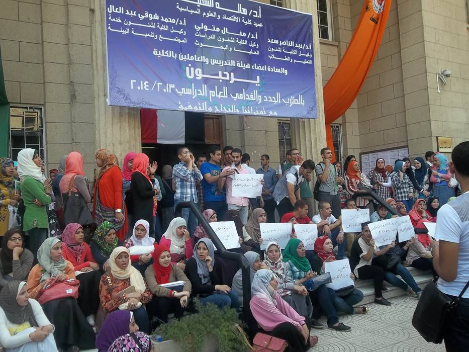 تظاهر العشرات من طلاب كلية اقتصاد وعلوم سياسية بجامعة القاهرة صباح اليوم الاثنين امام كليتهم اعتراضا على تأجيل تسكينهم لمدة أسبوعين بقرار من رئيس الجامعة الدكاور جابر نصار بحجة أن المدينة بها أعمال صيانة.