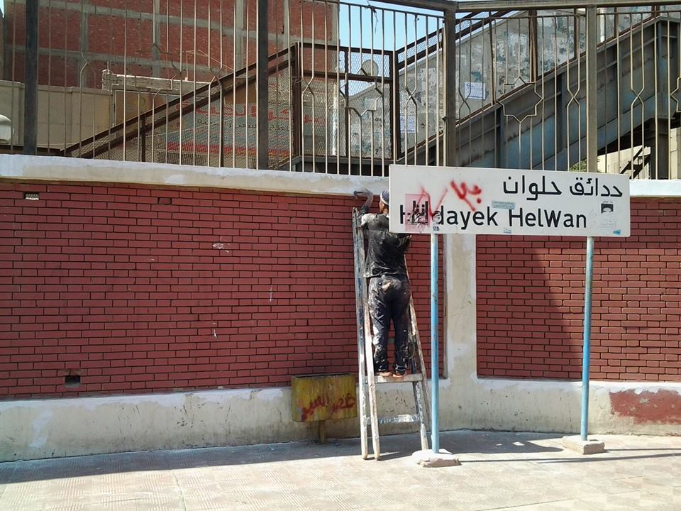 القيام بأعمال دهانات لحوائط محطه حدائق حلوان الآن ومسح كل الشعارات المناهضه للانقلاب العسكرى.