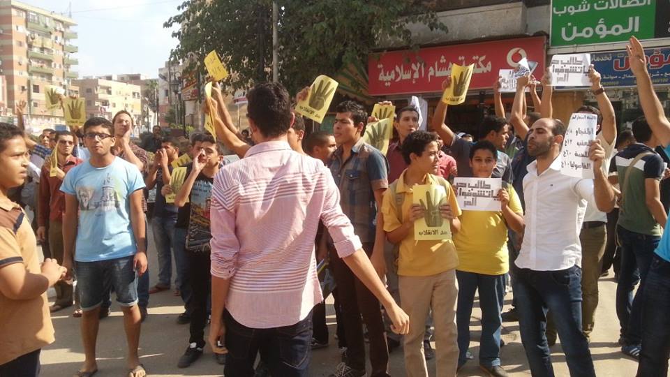 نظم العشرات من حركة طلاب ضد الانقلاب وقفة احتجاجا على الضبطية القضائية والانقلاب العسكرى الدموى. والذى راح ضحيته بعض زملائهم واعتراضا على وجود الامن والجيش داخل المدارس.