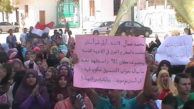 انتهت منذ قليل وقفة طلاب جامعة بنى سويف التى طالب خلالها الطلاب بالحرية لزملائهم المعتقلين والتى بدأت بوقفة امام كلية اداب ثم تحولت الى مسيرة الى كلية علوم ثم حقوق ثم المبنى الادارى للجامعة .