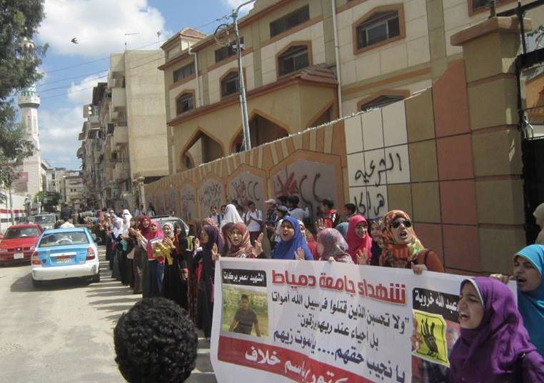 كما كانت هناك وقفة للحركة بشارع كلية أداب بمنطقة الأعصر بمحافظة دمياط تنديداً بالانقلاب العسكرى والمجازر والمداهمات التى تبعته لرافضى هذا الانقلاب.
