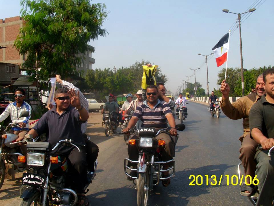 وفي الدقهلية مركزميت غمركانت هناك مسيرة بالموتوسيكلات رفضاً للإنقلاب العسكري بمدينه ميت غمر ضمن فاعليات السادس من أكتوبر.