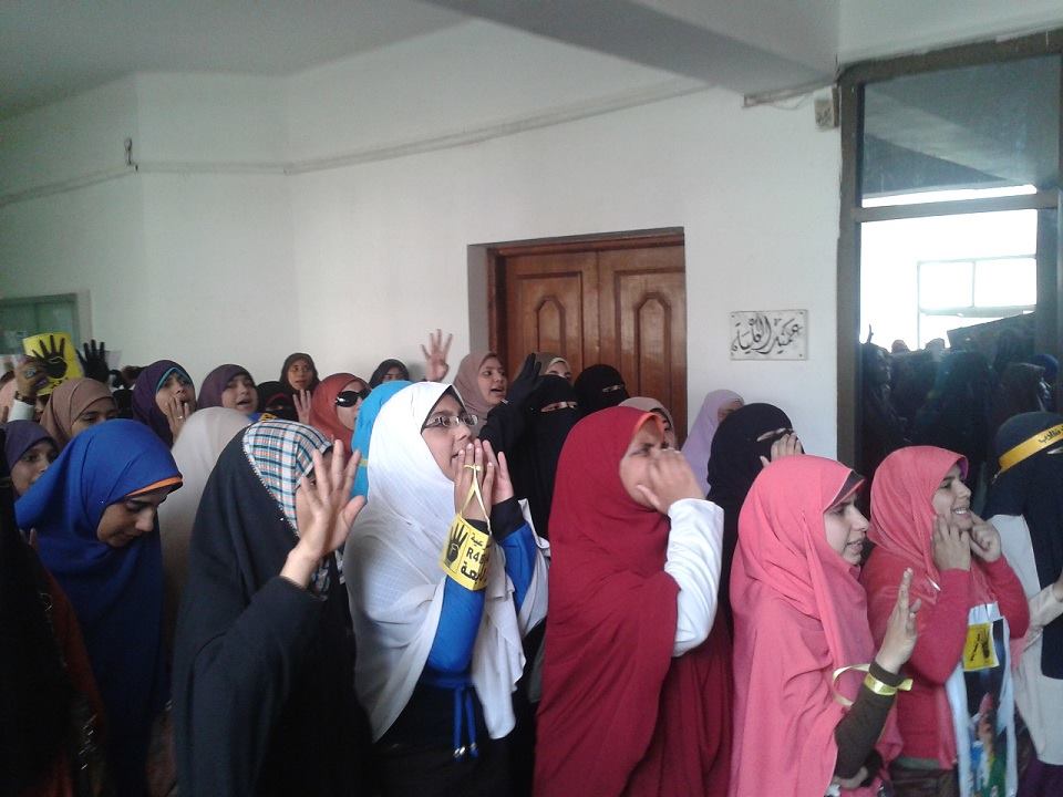 بدأت المسيرة بتنظيم طالبات كلية دار العلوم مسيرة طلابية داخل الكلية وتحركت بمسيرة حتي بوابة كلية الهندسة لتلتحم بالفعاليات الرئيسية التي شارك فيها طلاب جامعة الفيوم الرافضين للانقلاب العسكري , وبعد تنظيم الطلاب سلاسل طلابية أمام كلية الزراعة انطلقت مسيرة جابت باقي كليات الجامعة وبواباتها هاتفين : " يا ابو ضبورة ونسر وكاب .. غاوي لية حبس وقتل الشباب " , " اقتل واسجن وادبح فيا .. فكرك يعني مش هنثور .. مهما تقتل بردوا هقولها .. مجلس عار ورئيس طرطور " , " يا حرية فينك فينك .. حكم العسكر بينا وبينك " , " رابعة دي رمز الصمود .. عاشوا رجالة وماتوا اسود. " .