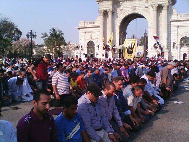 وصلت عقب صلاة العصر اليوم (الجمعة) الآلاف من رافضي الانقلاب العسكري إلى محيط قصر القبة ، وأدي المتظاهرون صلاة العصر في اتظار وصول مسيرات أخري.