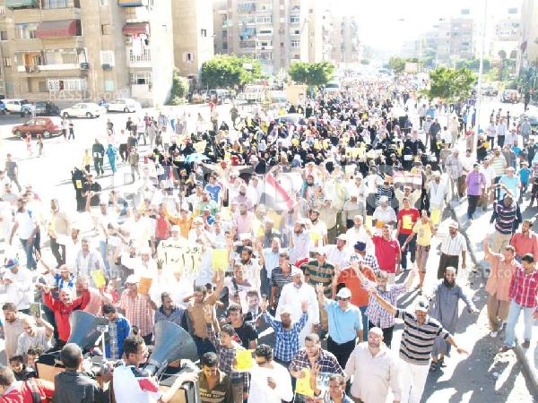 وردد المتظاهرون هتافات:- "شيل العمة شييل…تحت العمة عميل" "السيسي نفسو …يبقا ريس …هنقولو يا سيسي…اتغطى كويس".