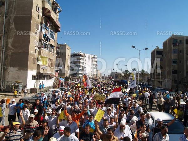 انطلقت اليوم (الجمعة) مسيرة حاشدة أشبه بالـ"الطوفان البشري" عقب صلاة الجمعة من مسجد الكريم ببورسعيد 0 رلرفض الانقلاب وتأييد شرعية الرئيس محمد مرسي.