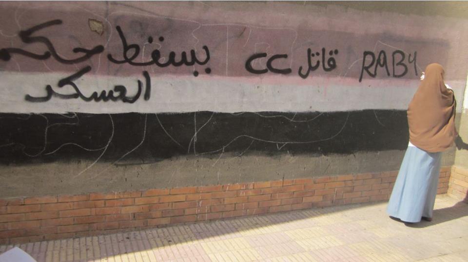 وطافت المسيرة الحرم الجامعي وقام المشاركون فيها بالكتابه على حائط الجامعه .