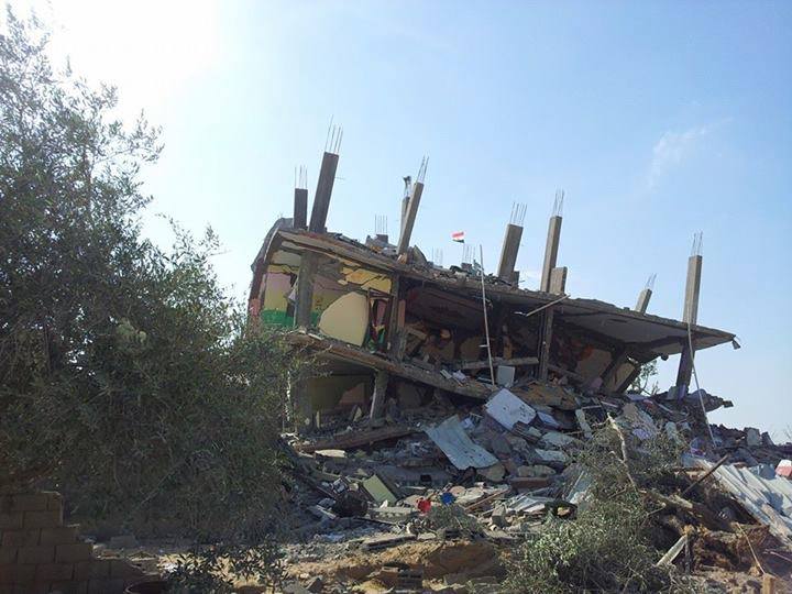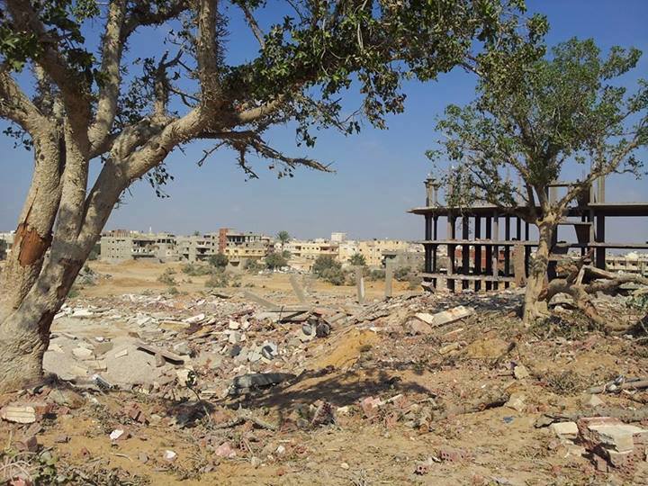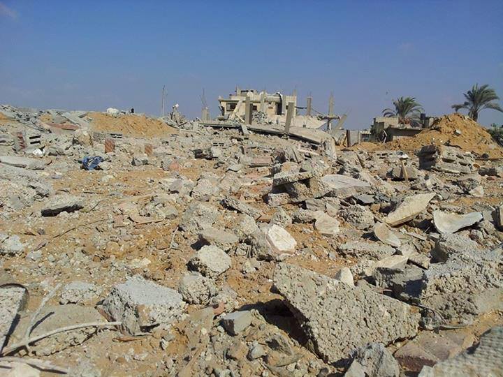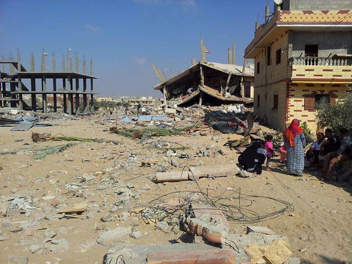 وتظهر الصور الدمار الذي لحق بالحي ويأتي هذا في إطار الإدعاء من قبل قوات الانقلاب بأنها تحارب الإرهاب بشمال سيناء.