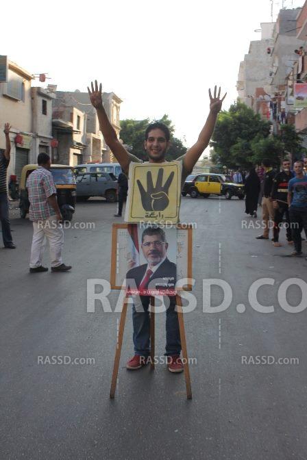 وفي الجيزة، انطلقت مسيرة حاشدة لأهالي الوراق عقب صلاة العيد من أمام مسجد عثمان، رافعين علامة رابعة.