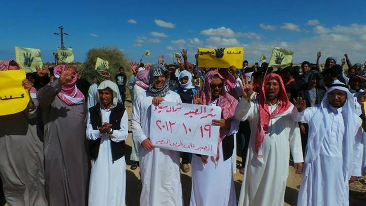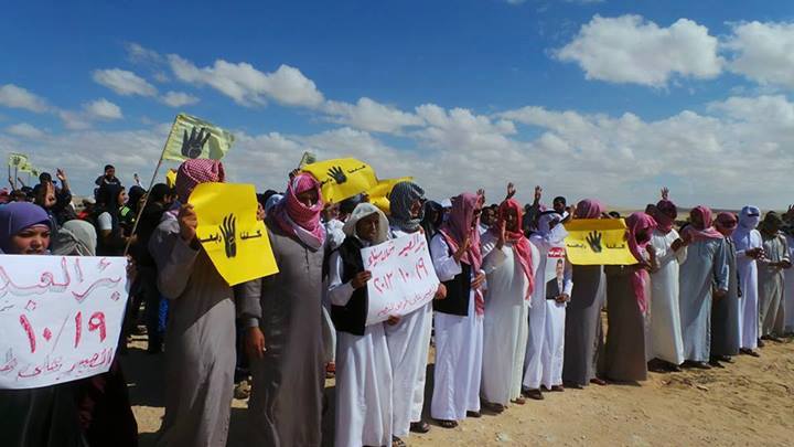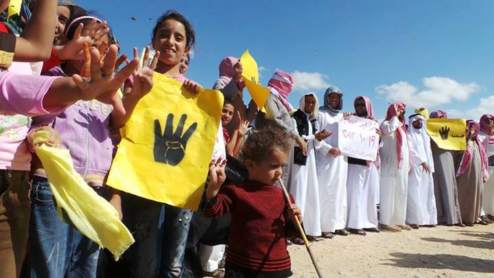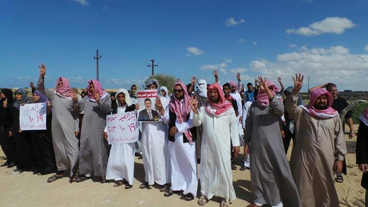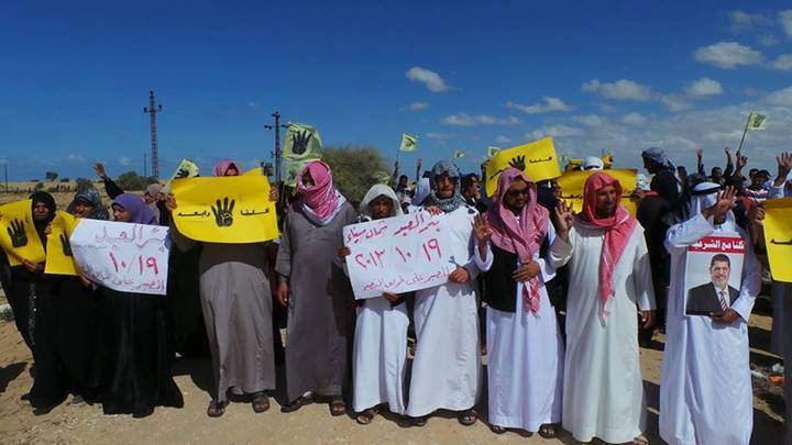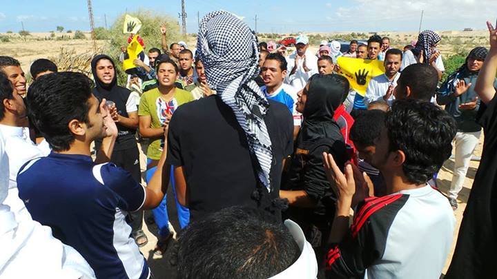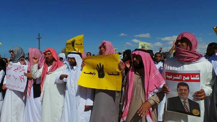 قام عدد من رافضي الانقلاب بمدينة بئر العبد بشمال سيناء بمسيرات حاشدة ورفعوا فيها لافتات مناهضة للانقلاب ومجازره.