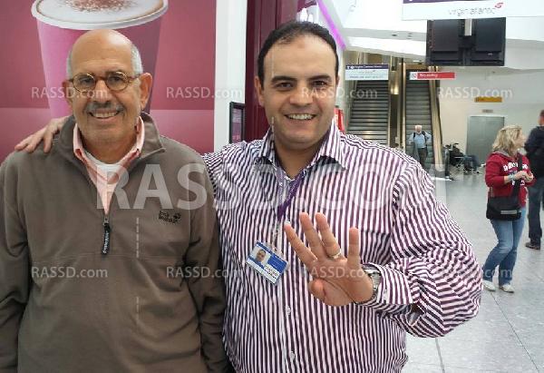 وقد التقط أول أمس صورة مع د. محمد البرادعي – النائب السابق للمستشار عدلي منصور المكلف من وزارة الدفاع بإدارة شؤون البلاد بعد الانقلاب – وهو في أحد مطاعمه رافعًا إشارة رابعة العدوية .