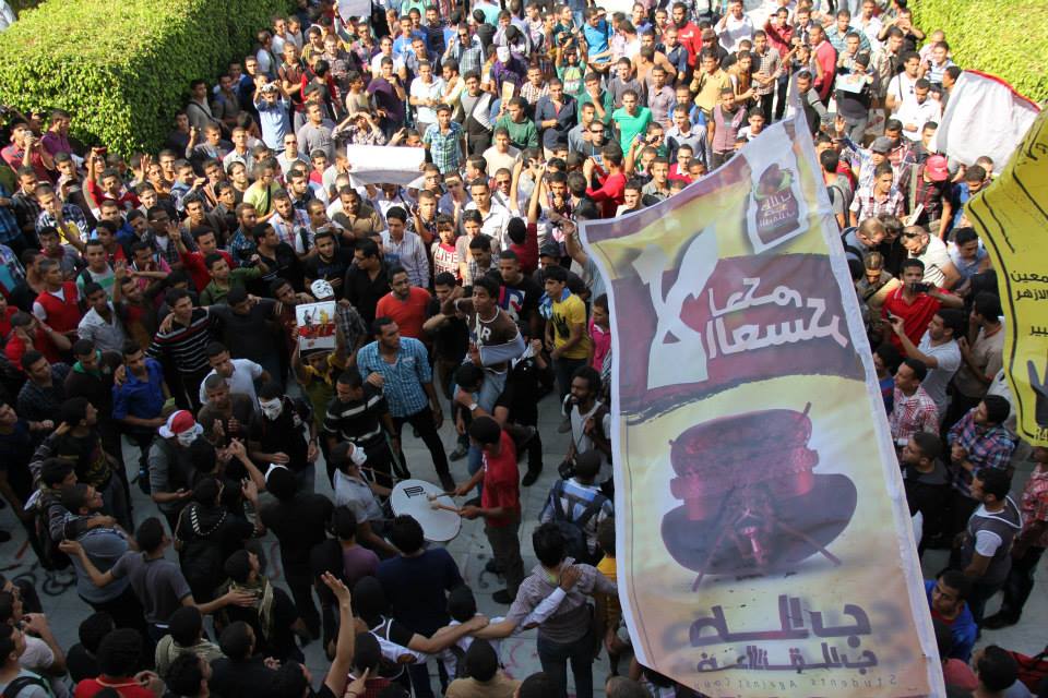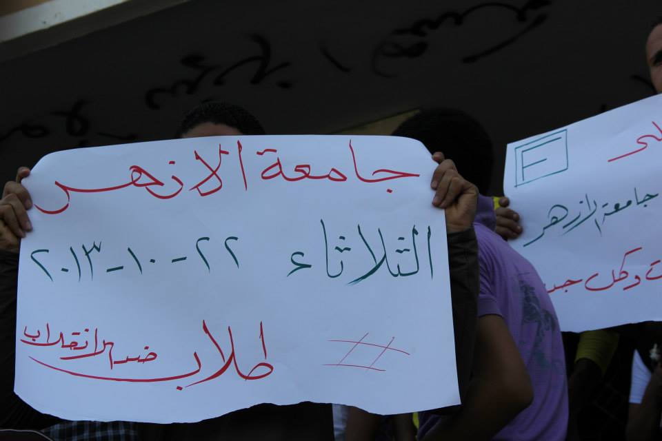 انتفض طلاب الأزهر لليوم الرابع علي التوالي منذ بدء الدراسة وهتف الطلاب داخل الرحم الجامعي ضد موقف مؤسسة الأزهر من الانقلاب ورفض الطلاب الدراسة تحت حكم العسكر .