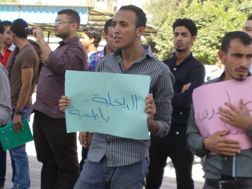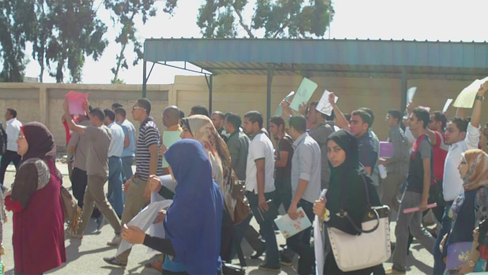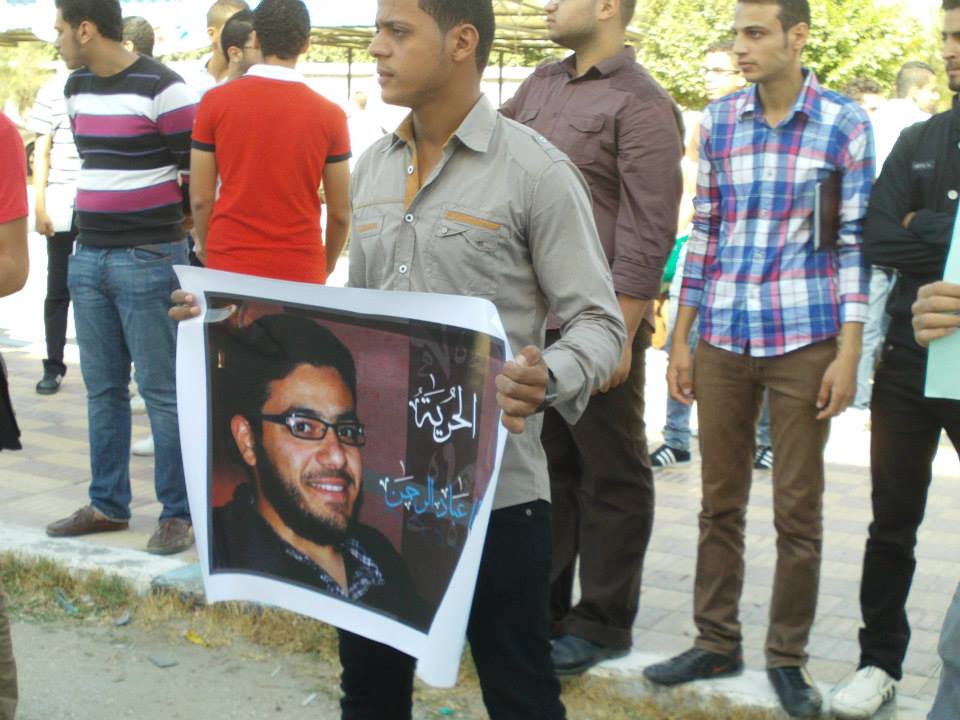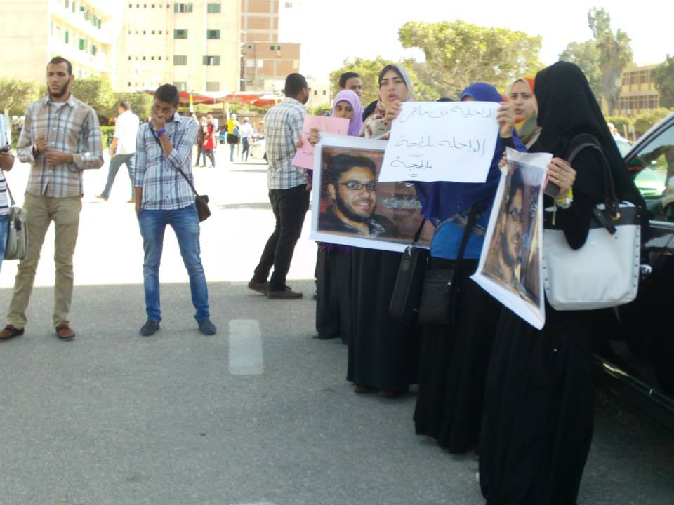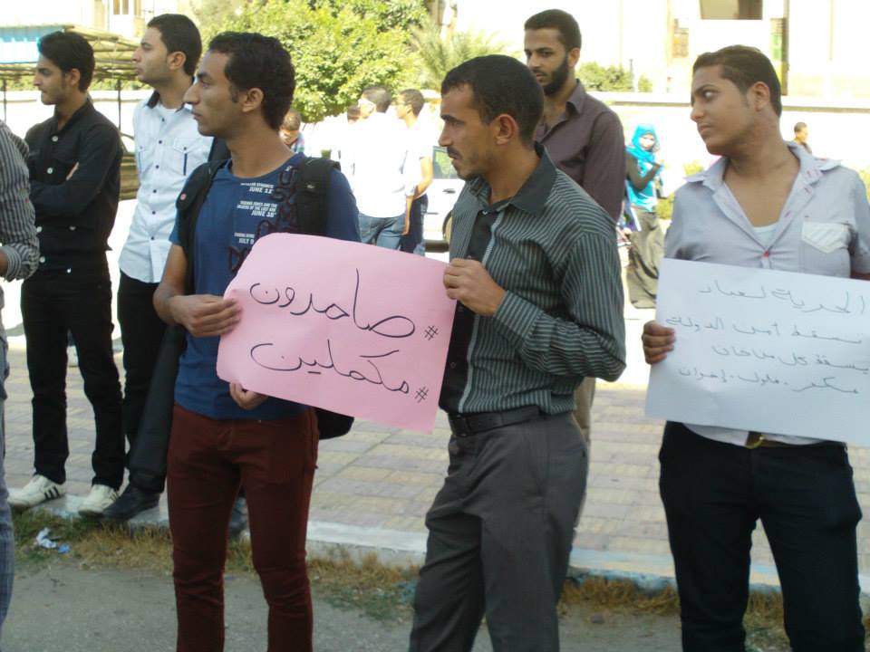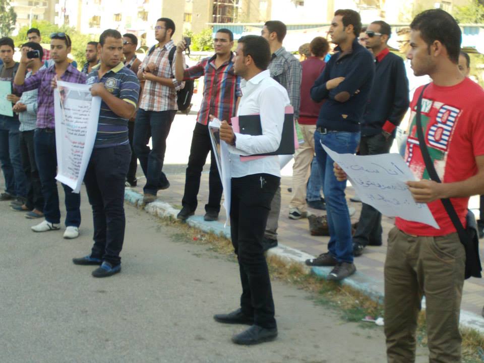 نظم أساتذة وطلاب كلية الهندسة بجامعة بورسعيد وقفتهم الاحتجاجية الثانية للمطالبة بالإفراج عن المعيد المعتقل ورفع المشاركون لافتات تحمل صور المعتقلين وترفض القمع الذي يمارسه أمن الانقلاب .
