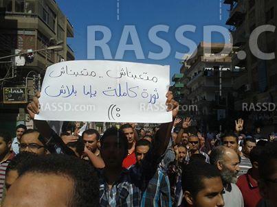 كما نظم شباب ضد الانقلاب وقفة بمنية النصر بالدقهلية فى شارع البحر، منددين بحكم العسكر، ومجازره ومطالبين بعودة الشرعية .