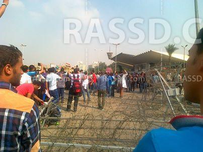 فيما أنطلق مجموعة من طلبة الأزهر خارج الجامعة متجهين نحو النصب التذكاري، وقام عدد منهم باختراق السلك الشائك.