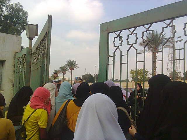 كما اتجهت مسيرة الطالبات و دخلت الى كليات البنين من باب كلية الزراعة.