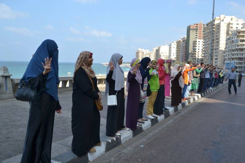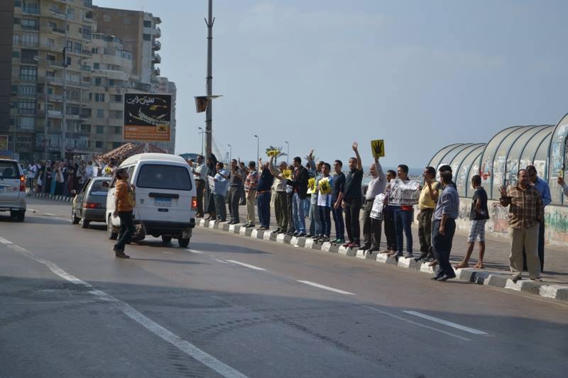 انطلقت وقفة صامتة اليوم بطول كورنيش الاسكندرية بمنطقة 45 حيث رفع المشاركون لافتات مناهضة للإنقلاب العسكرى الغاشم ولافتات لإشارة النصر برابعة .