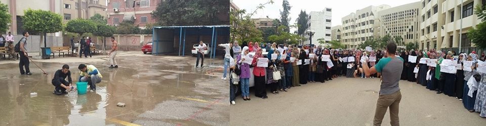 وبالأمس قام الأمن الإداري لجامعة الأزهر بنات بالقاهرة بإغراق أرض الجامعة بالمياة لوقف مسيرات الطالبات مما دفعهن للخروج والتظاهر أمام الجامعة.