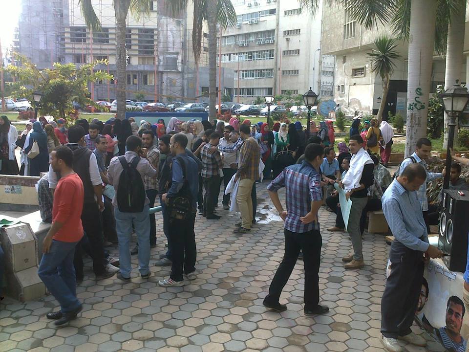 وقد جابت المسيرة أنحاء الجامعة ابتداء من كليتي التجارة والحقوق مرورا بكلية الآداب والعلوم والزراعة ومبني المركزية رافعين صور شهداء الجامعة وإشارات رابعة العدوية.