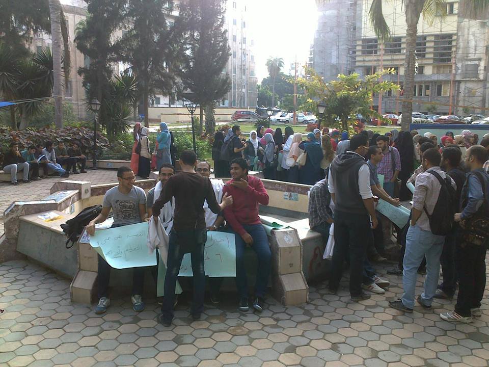 حيث ردد الطلاب هتافات ضد حكم العسكر و ضد وزير الدفاع الإنقلابي الفريق عبد الفتاح السيسي مطالبين بالإفراج عن زملائهم المعتقلين في سجون الإنقلاب و منها : " واحد اتنين طلعوا المعتقلين " " يا شرنوبي يا ولد سجنك بيحرر بلد " .