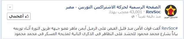 أعلنت حركة الاشتراكيين الثوريين منذ قليل نبأ اعتقال أيمن ماهر – عضو جبهة طريق الثورة – خلال توزيعه بيان لحشد التظاهر في الذكرى الثانية لأحداث محمد محمود .