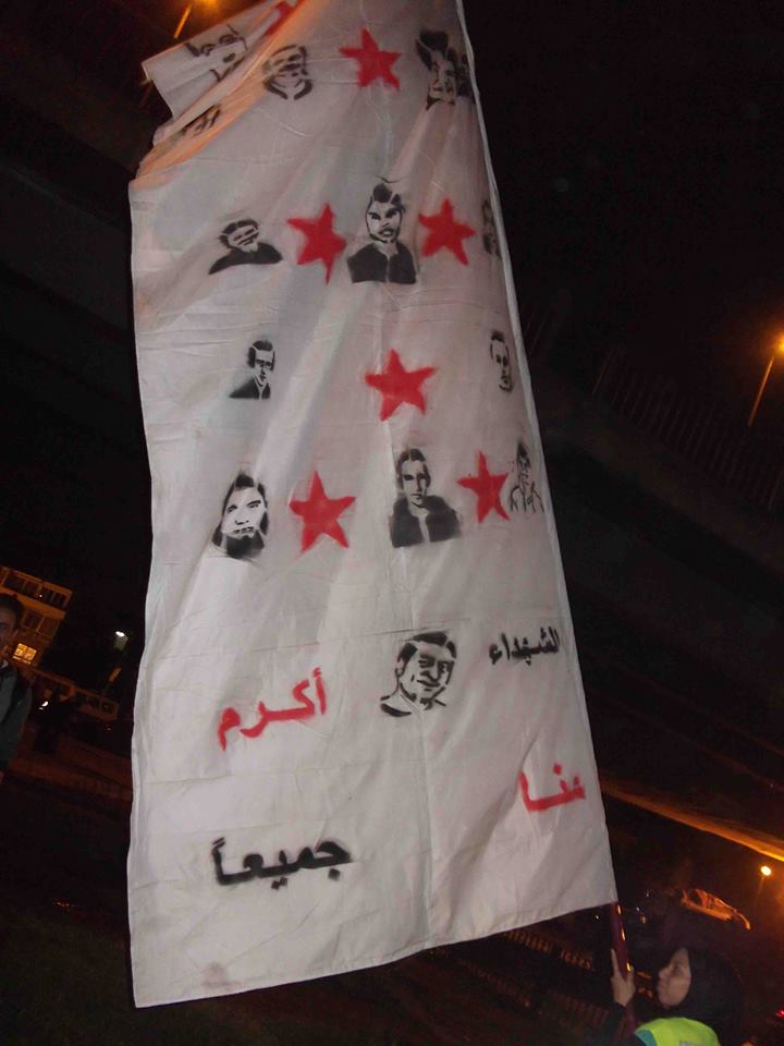 وتابع "فبسم كل المؤمنين فعليا بعقيدة يسقط كل من خان عسكر – فلول – إخوان، وانطلاقا من إيماننا بفكرة ان الخبز والحرية يسيران معا، ندعوكم لمشاركتنا فعاليات إحياء ذكرى أحداث شارع محمد محمود يوم 19 من الشهر الجاري، مطالبين بالحرية للمعتقلين مؤخرا من ضحايا الاعتقالات العشوائية، رافضين تكميم الأفواه وعودة ممارسات الشرطة القمعية من بلطجة واستعلاء على المواطنين وتعذيب في السجون وطمس روح الحالة الثورية للشعب الذي يتوق للتغيير .. فلا لأخونة الدولة .. ولا لعسكرة الدولة .. ولا لإعادة تدوير النظام القديم."