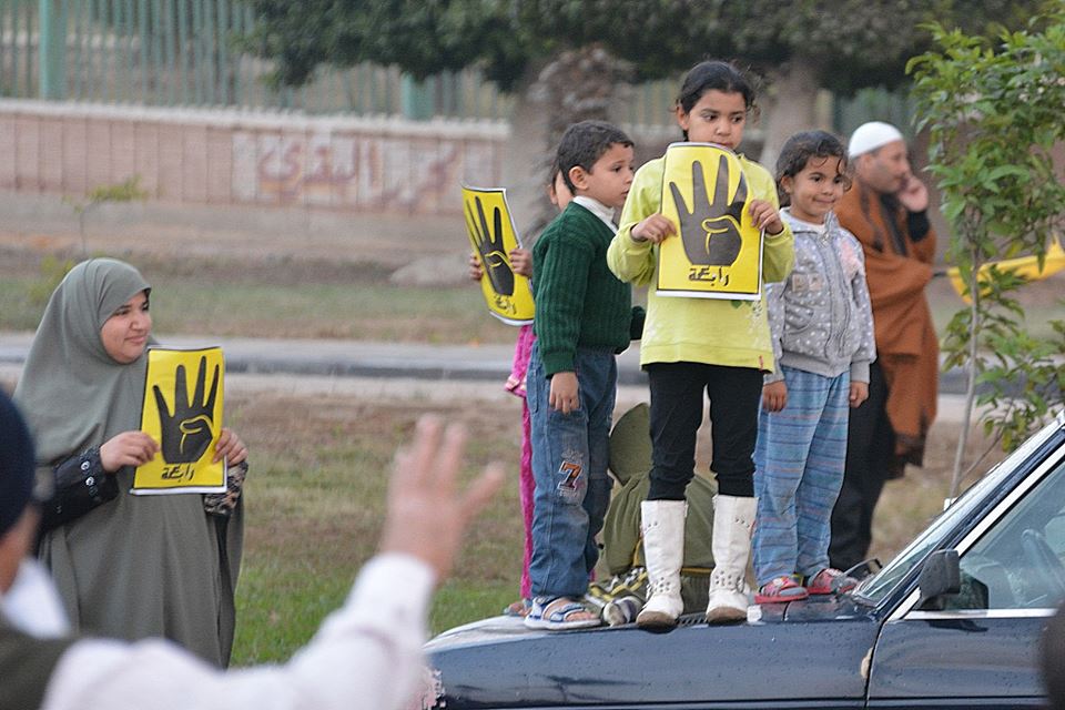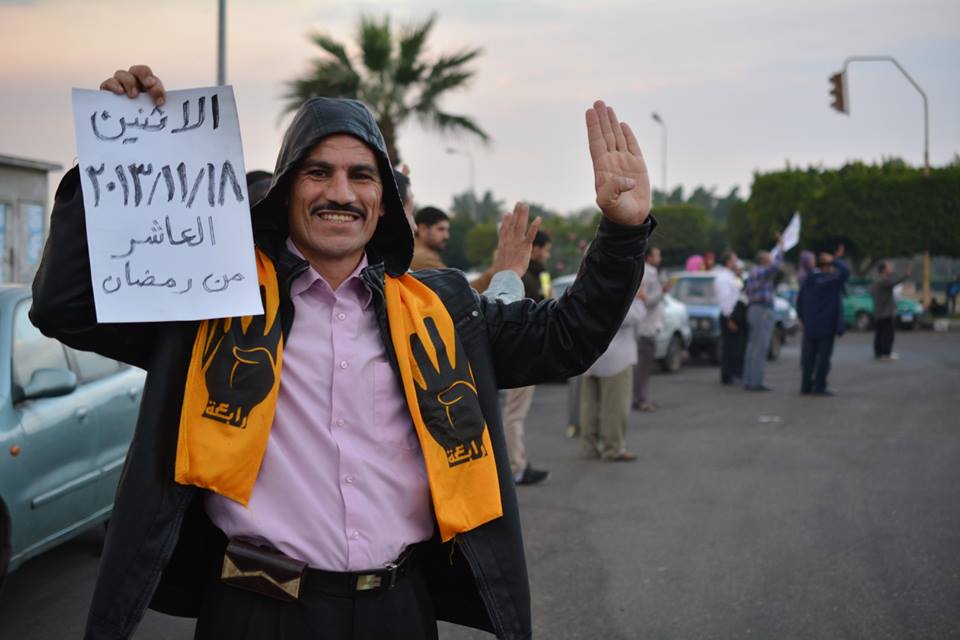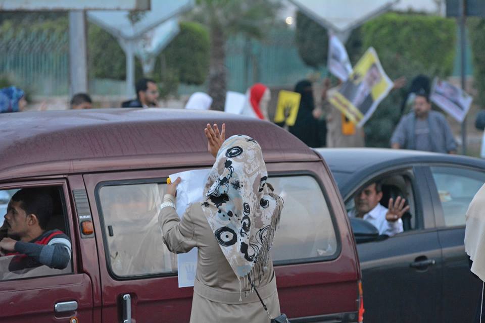 كما رفع المشاركين بالسلسلة شعار رابعة، ولاقت السلسلة البشرية تأييداً من الأهالي وسيارات المارة وعمال المصانع، الذين تفاعلوا مع المحتجين برفع اشارة رابعة .