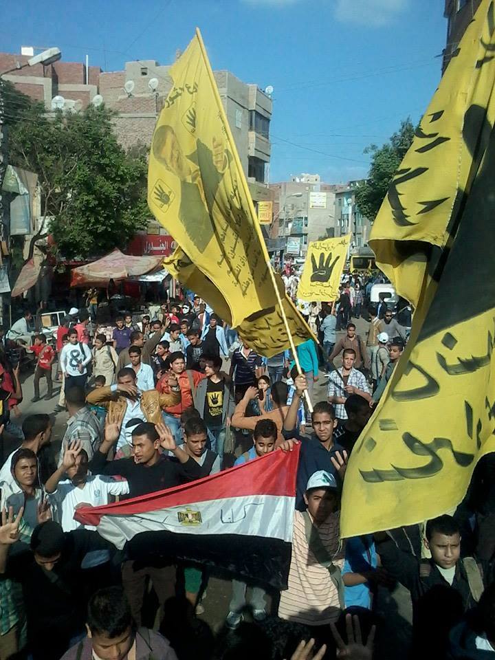 وفي ذات السياق، انطلقت مسيرة من أمام المدرسة الثانوية عقب انتهاء اليوم الدراسى, وجابت أنحاء وشوارع المدينة، وحمل المشاركون فيعا اللآفتات الرافضة لحكم العسكر، وصورا للمعتقلين والشهداء, وملوحين للمارة بإشارة رابعة.