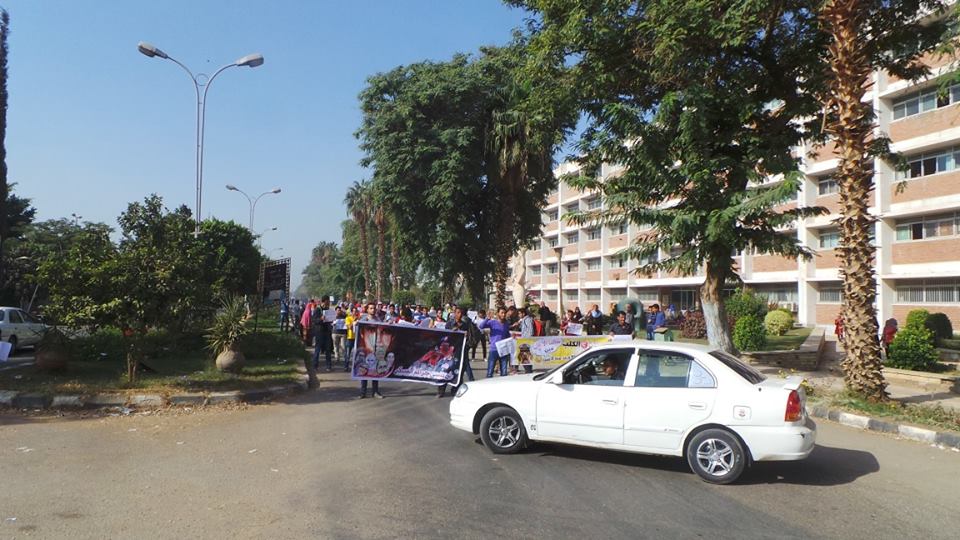 أما طلاب جامعة المنيا فقد قطعوا الطريق الرئيسي داخل الجامعة في اطار فعاليات يوم غضب الطلاب علي احداث الازهر.