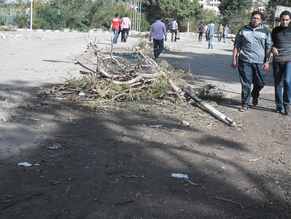وقام الطلاب بتقطيع بعض الأشجار المتواجدة داخل المدينة وإشعال النيران بها لتخفيف رائحة الغاز المسيل للدموع.