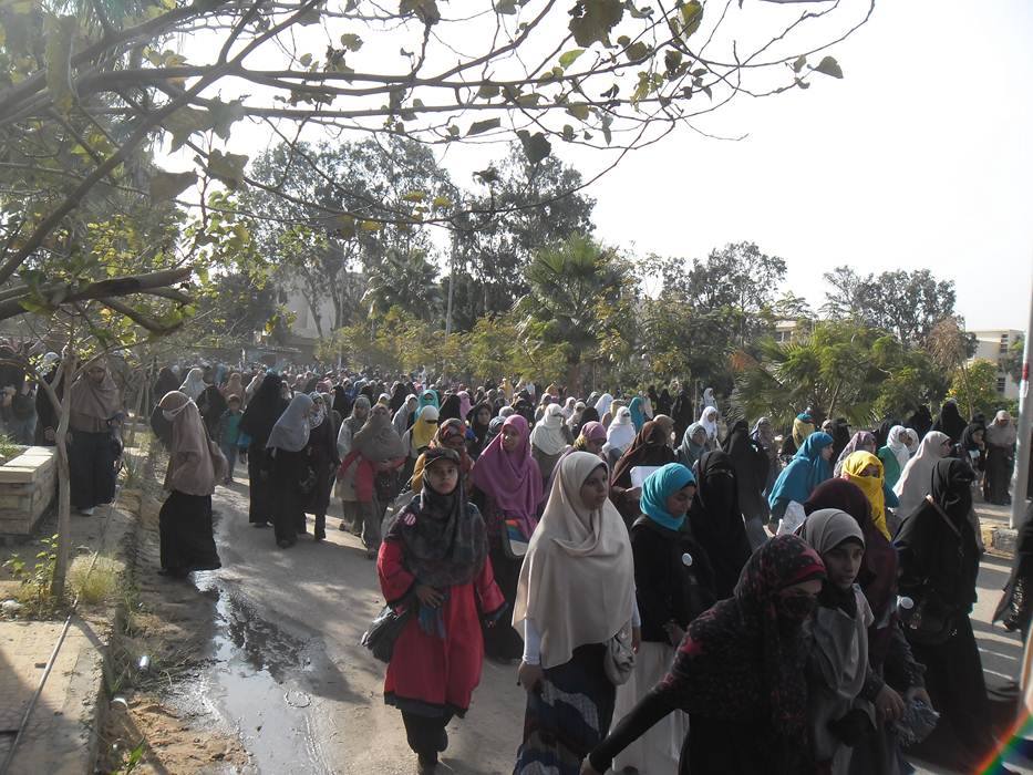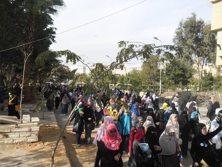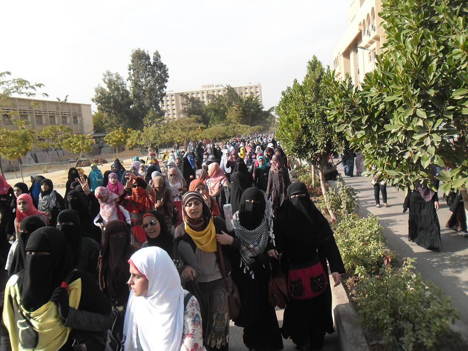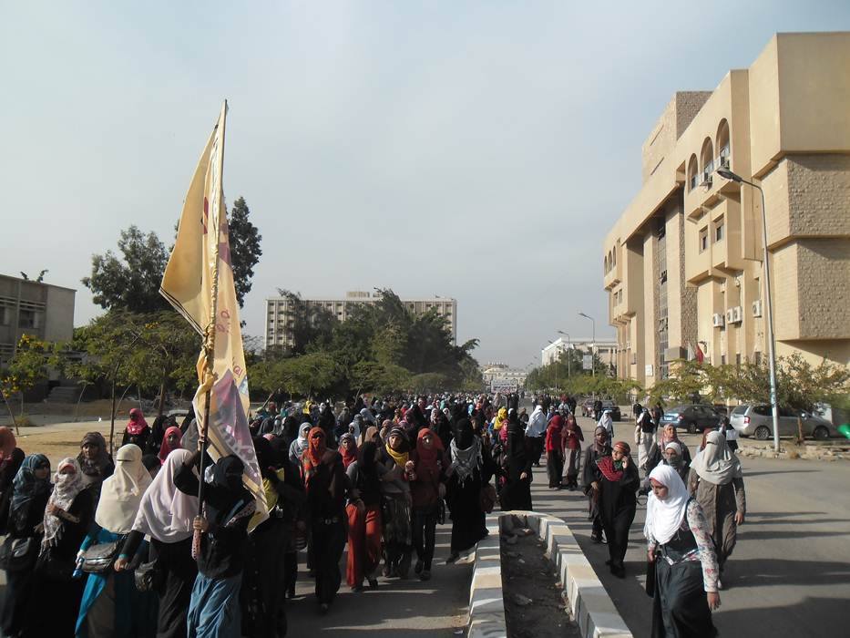 كما وصلت  مسيرة حاشدة من طالبات الأزهر بالقاهرة إلى كلية البنين وخرجت تظاهرات أمام رئاسة الجامعة للتنديد باستشهاد طالبين في أحداث المدينة الجامعية أمس، مرددين هتافات مناهضة لحكم العسكر وشيخ الأزهر ورئيس الجامعة.