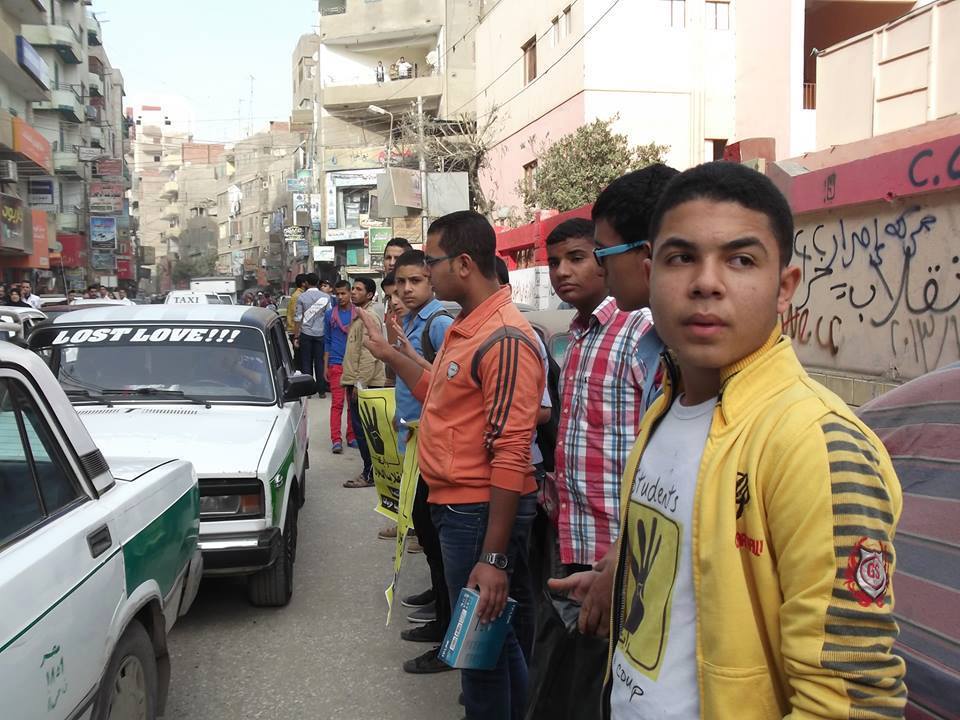 و حمل الطلاب اللافتات الرافضة لحكم العسكر، مرددين هتافات منها " يالي بتسأل احنا مين.. احنا اخوات" " شيل العمه شيل..يا طيب يا عميل " " طالب نايم في المدينة … قاموا قتلوه بالسكينة ".