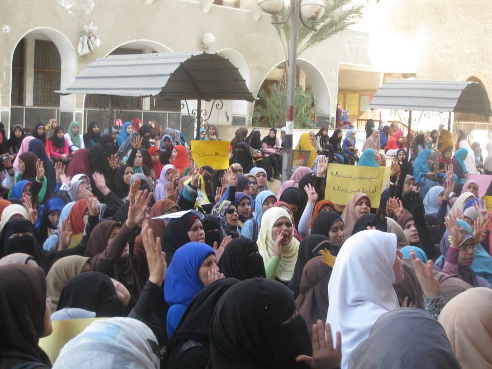 تظاهرت طالبات كلية الدراسات الاسلامية بجامعة الازهر فرع المنصورة أمس الخميس احتجاجا على اقتحام المدينة الجامعية لطلاب الازهر ورفض الإنقلاب العسكري