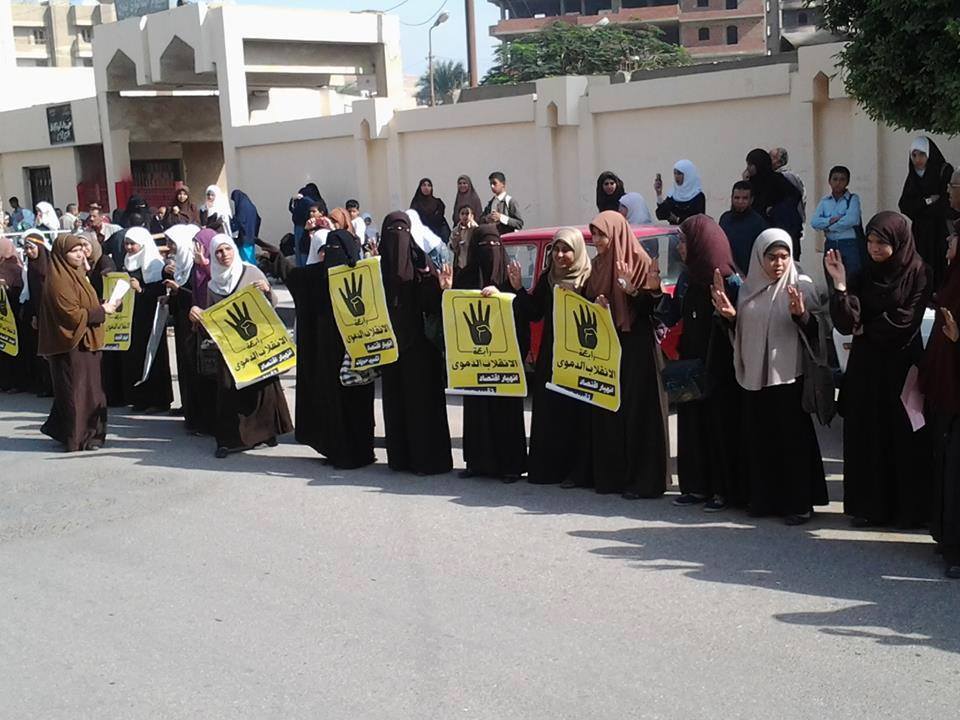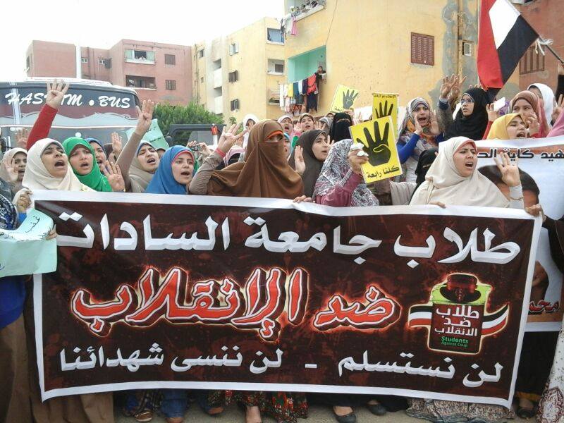 نظمت طالبات كلية الدراسات الإسلامية التابعة لجامعة السادات بالمنوفية مسيرة مناهضة للانقلاب، وذلك بعد تحرك مسيرة الطلبة من أمام كليه التربية.
