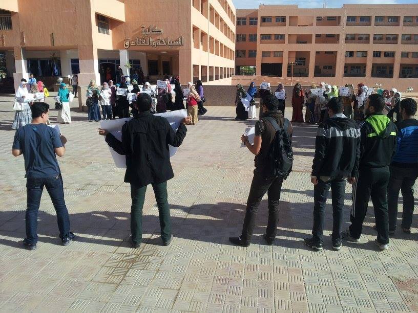 ندد الطلاب المشاركين في الوقفة بانتهاكات داخلية الانقلاب وبلطجيتها للحرم الجامعي والاعتداء على الطلاب، رافعين صورًا للرئيس محمد مرسي وشارات رابعة العدوية وصور الشهيد الطالب محمود القطان بكلية الحقوق" والشهيد "الدكتور عبد الحميد صبيح استاذ مساعد بكلية الطب البيطرى" وصورالمعتقلين من زملائهم بالجامعة مؤكدين أنهم مستمرون في مناهضتهم للانقلاب الفاشي حتى يتم إسقاطه غير عابئين بالانتهاكات التي يتعرضون لها على أيدي بلطجية الداخلية..