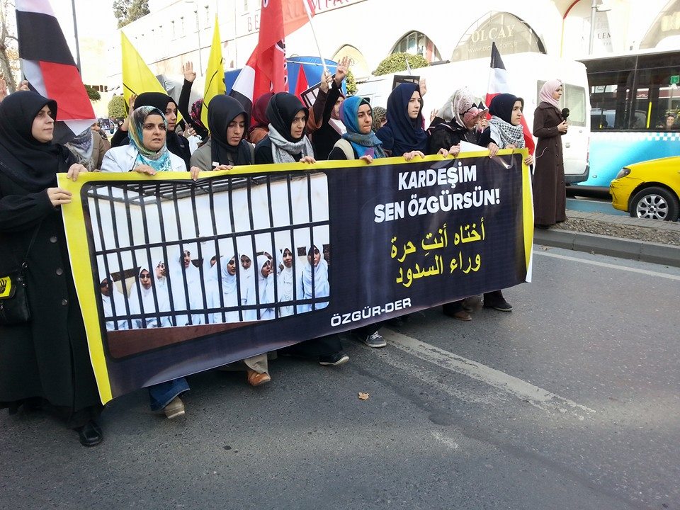 انطلق آلاف المصريين والأتراك في مسيرة حاشدة بحي الفاتح باسطنبول للتنديد بالأحكام الجائرة ضد حرائر مصر