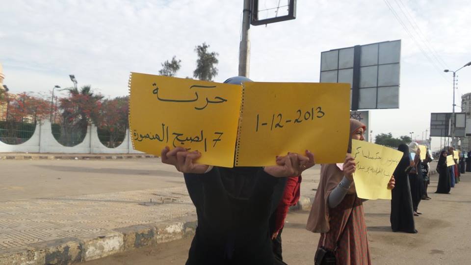 نظمت حركة "7 الصبح" صباح اليوم الأحد، سلسلة بشرية بمدينة المنصورة، أمام نادى جزيرة الورد تنديداً باعتقال الفتيات والحكم على حرائر الإسكندرية بالسجن 11 عاماً، ورفضاً للإنقلاب ودعماً لشرعية الرئيس محمد مرسي.