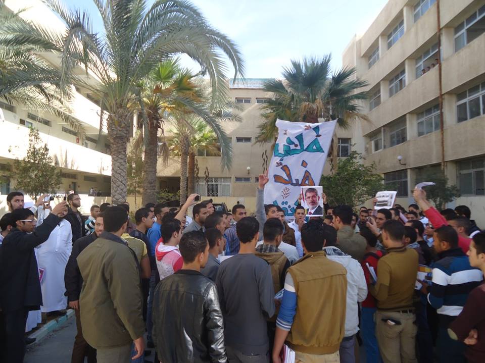 وندد الطلاب المشاركين في الاعتصام بمقتل زميلهم الطالب "صهيب البسطويسي"، واعتقال زميليهم "مصعب عصام أحمد جاد" و"محمد هاشم الموافي النجار" على يد قوات أمن الانقلاب.