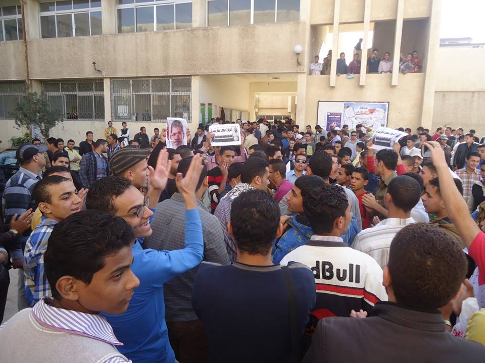 وردد الطلاب هتافات منها :"صهيب أخونا مشالش سلاح ", " والسيسي هو السفاح" , "محمد هاشم يا ولد سجنك بيحرر بلد", "سجنو مصعب أخونا ليه .. كان بلطجي ولا ايه".
